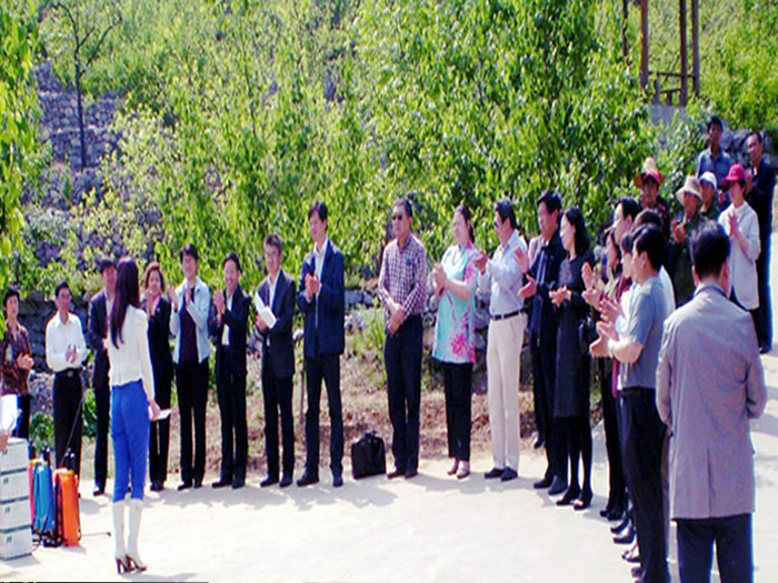 王丽萍 ( 左四 ) 在介绍高效有机肥情况 。 民革中央副主席 、 全国政协常委 、 民革北京市委主委傅惠民 ( 左七),冰 北京市门头沟区政协主席张冰 ( 左六) , 中共门头沟区委常委 、 组织部部长 、统战部部长丁勇 ( 左八) ,民革北京市委秘书长蒋耘晨 (左九) ,民革北京市委经社处处长常桂云 (左五) ,高效有机肥课题组主任赵易元(左十) ,首席专家封兴毅(左二) ,李梦涛(左十一)